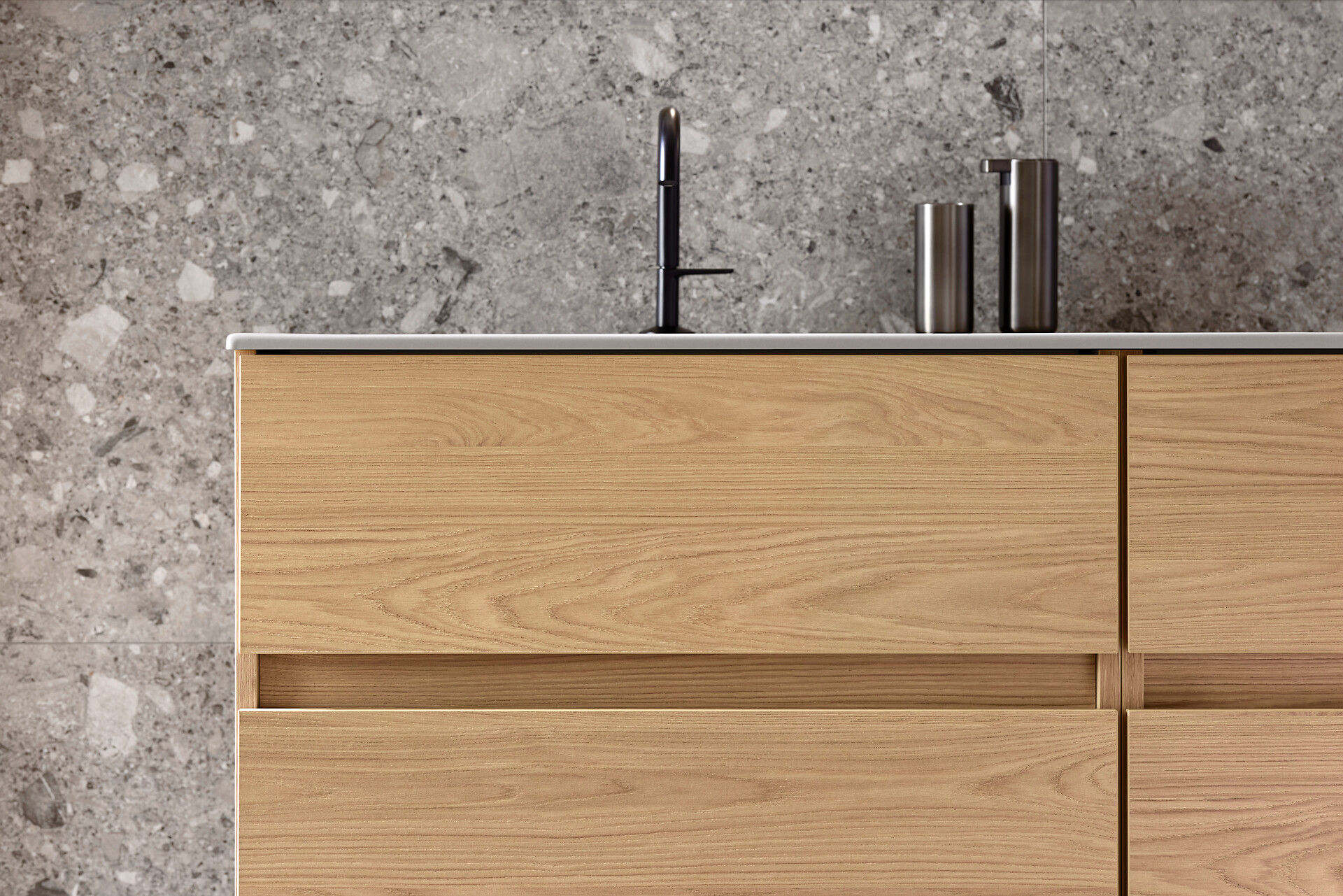 Grifflose Badmöbel, die Ergonomie und klares Design in sich vereinen